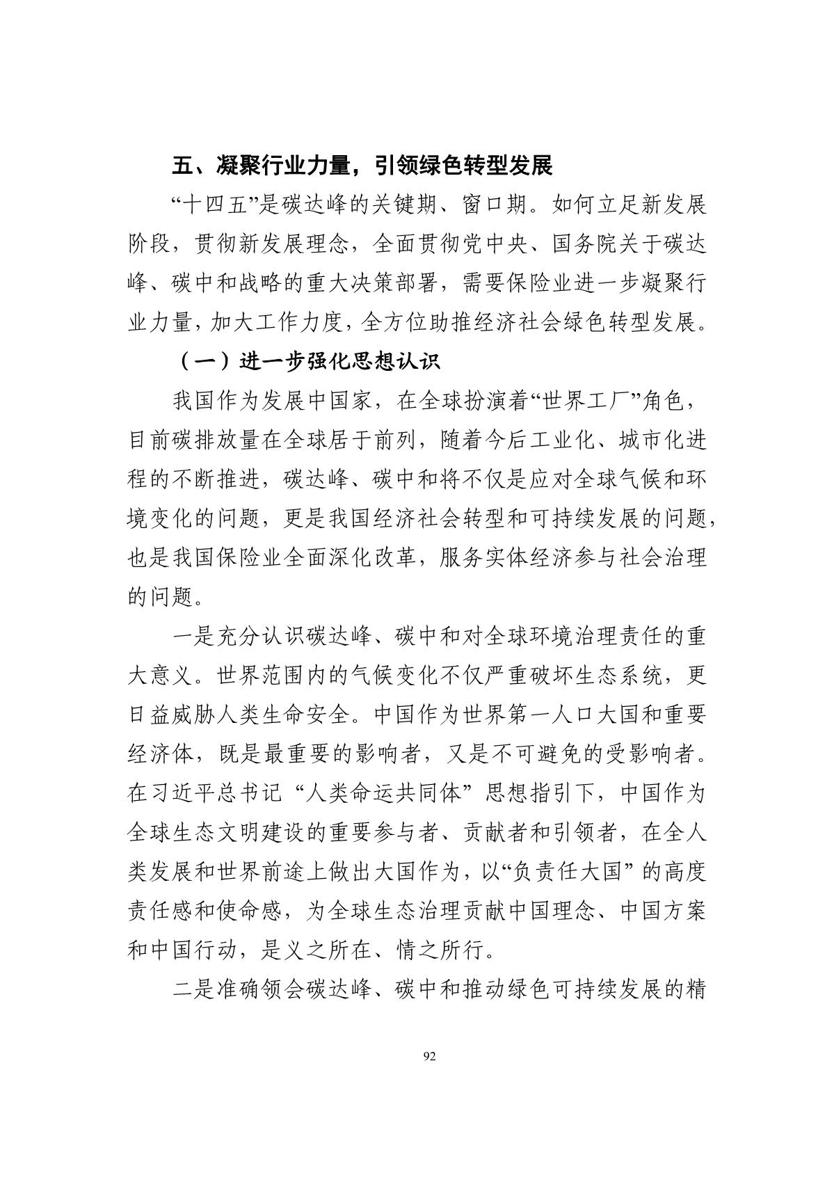 《保险业聚焦碳达峰碳中和目标助推绿色发展蓝皮书》